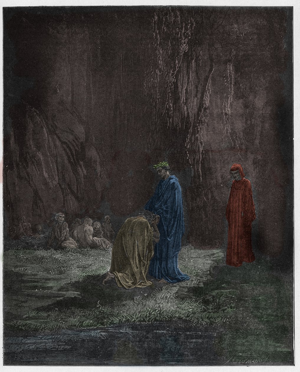Purgatorio Canto 7: The poet Sordello astonished kneels before