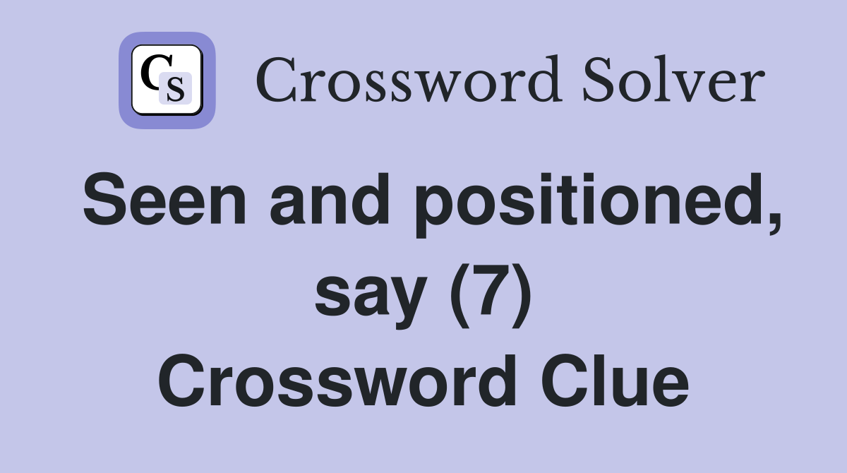 Seen and positioned say (7) Crossword Clue Answers Crossword Solver