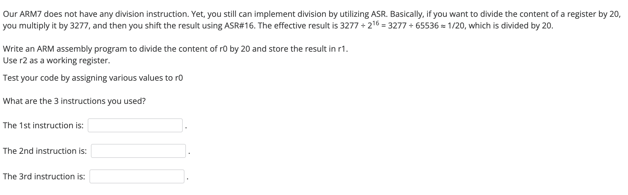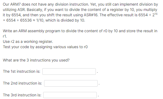 Solved Our ARM7 does not have any division instruction Yet Chegg com