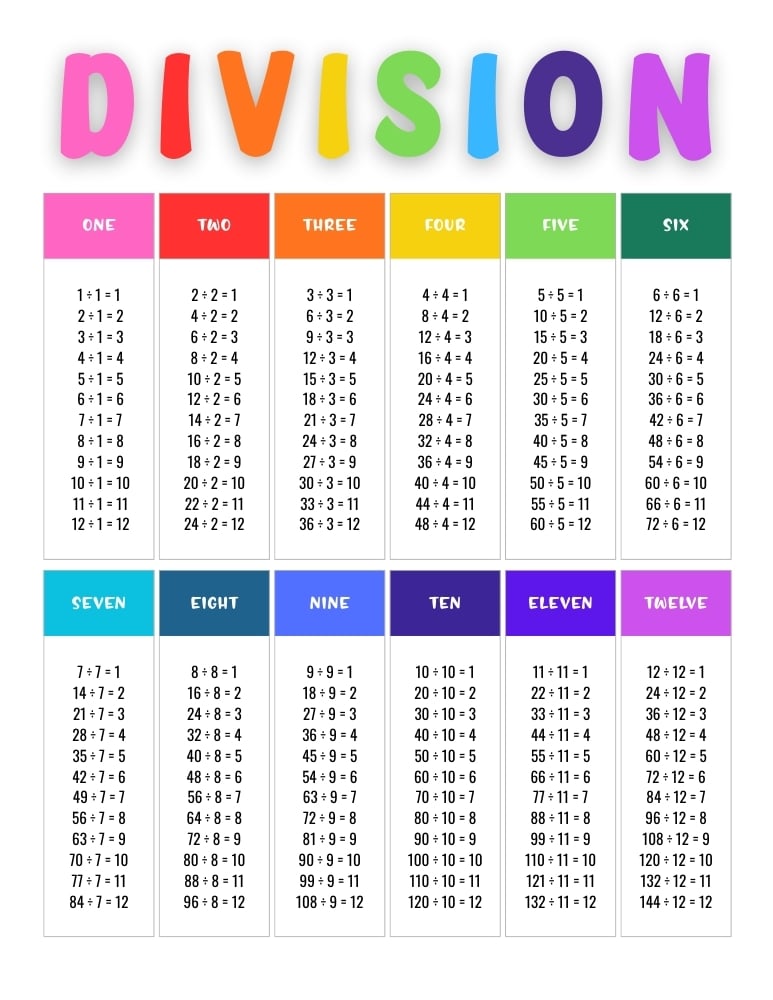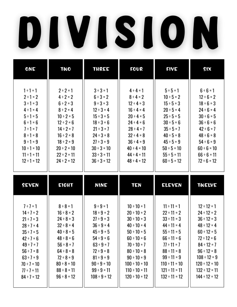 Free Printable Division Charts Tables (PDF)
