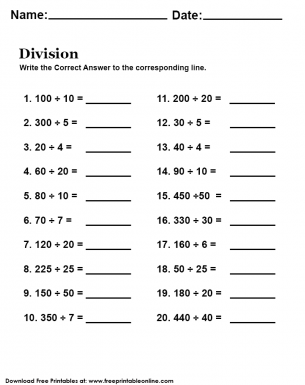 Printable Division Math Worksheets