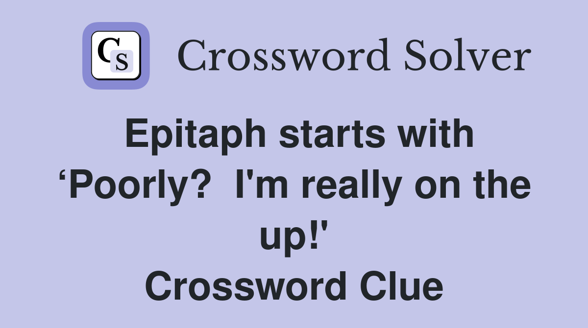 Epitaph starts with Poorly? I #39 m really on the up #39 Crossword Clue