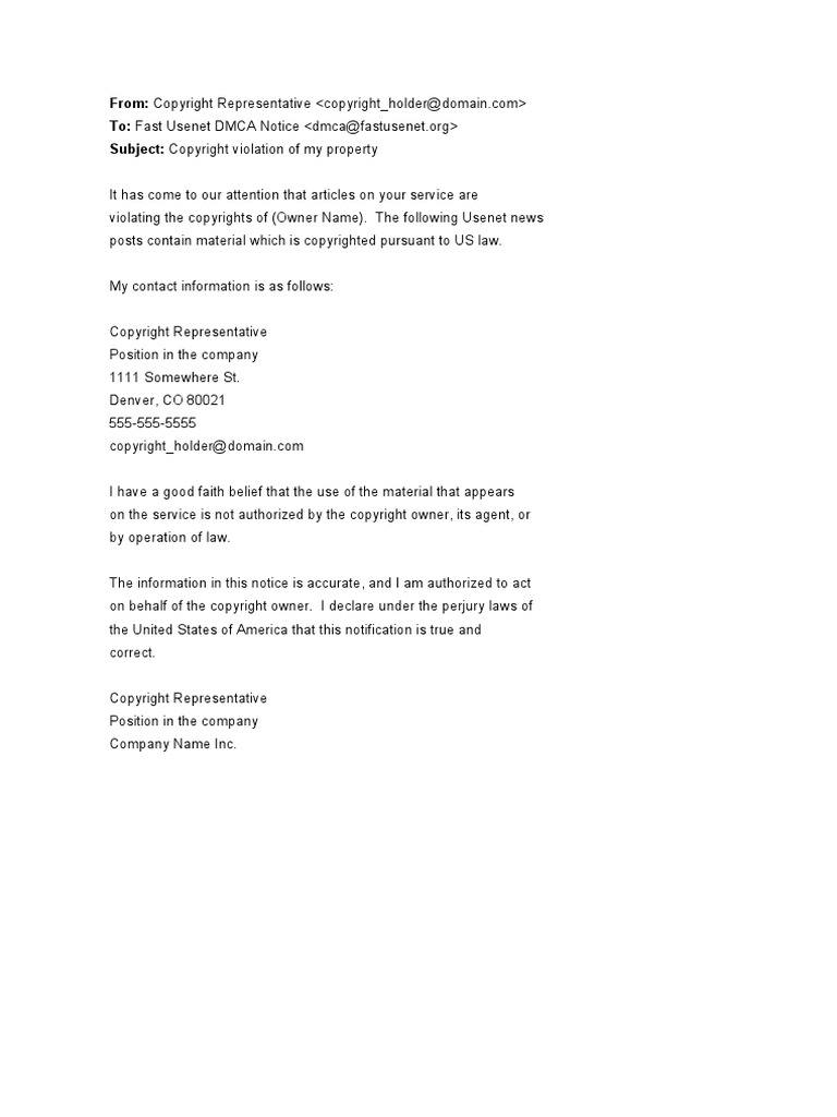 Dmca Takedown Notice Template