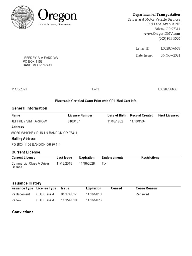 OR DMV Court Report PDF Land Transport Driving
