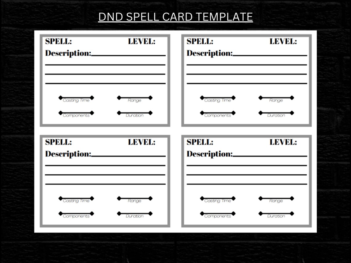 Dnd SPELL CARD Template DM Tool Player Tool Etsy