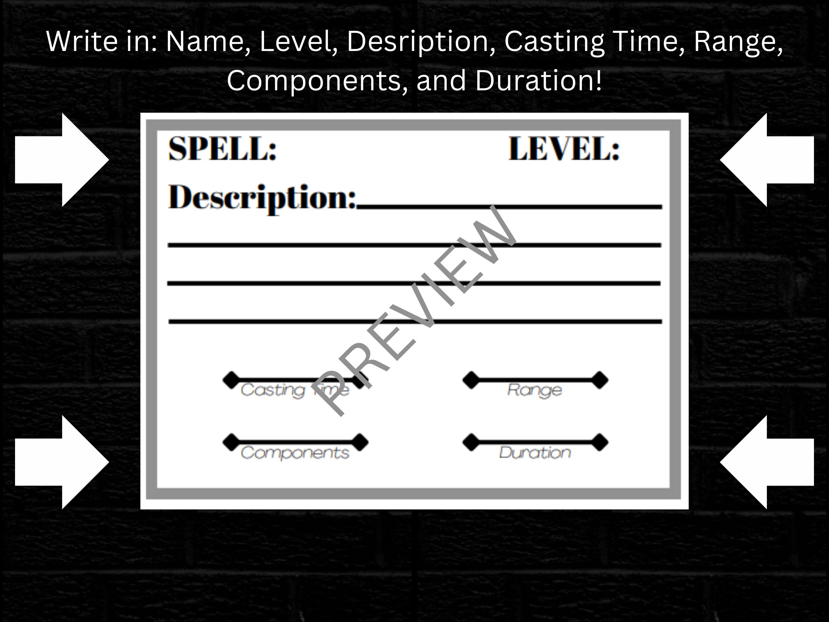 Spell Cards Dnd 5e Printable / Fillable PDF Spell Card Template Digital