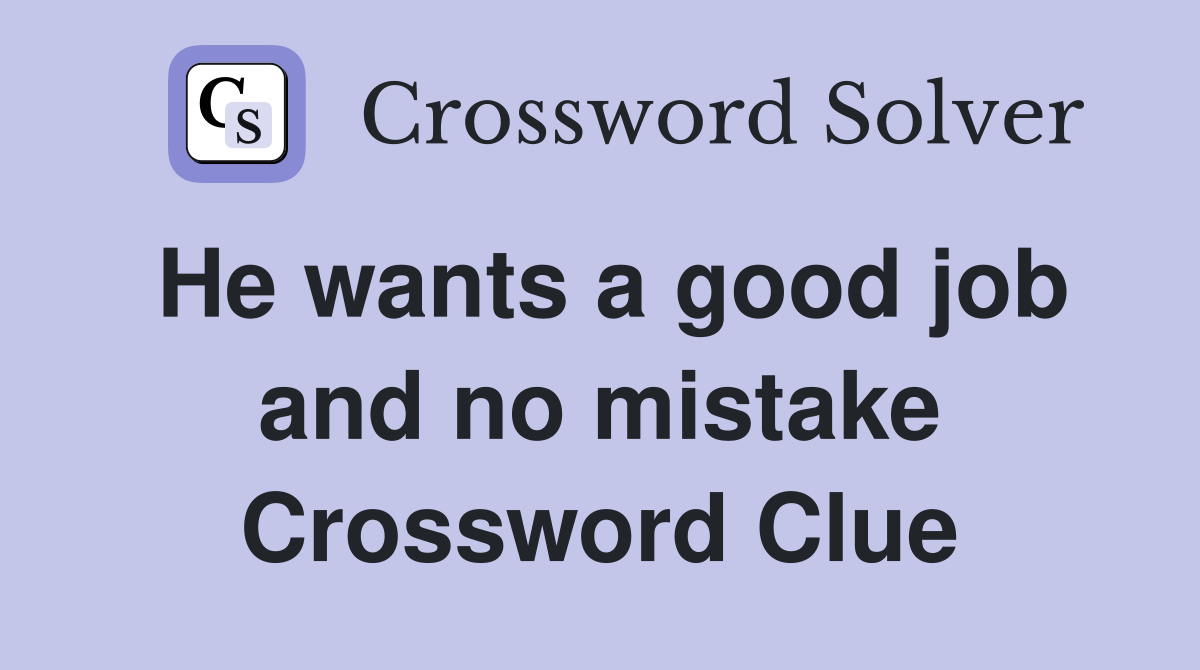 He wants a good job and no mistake Crossword Clue Answers Crossword