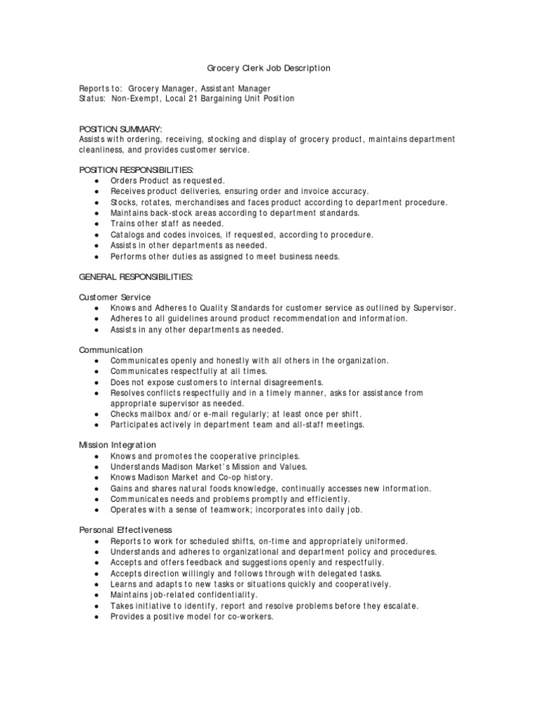 Grocery Clerk Job Description Download Free PDF Cooperative
