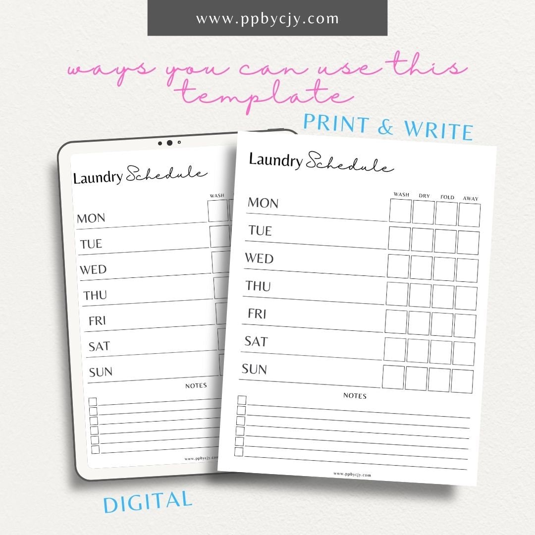 Laundry Schedule Weekly Routine Laundry Chore Management Chart