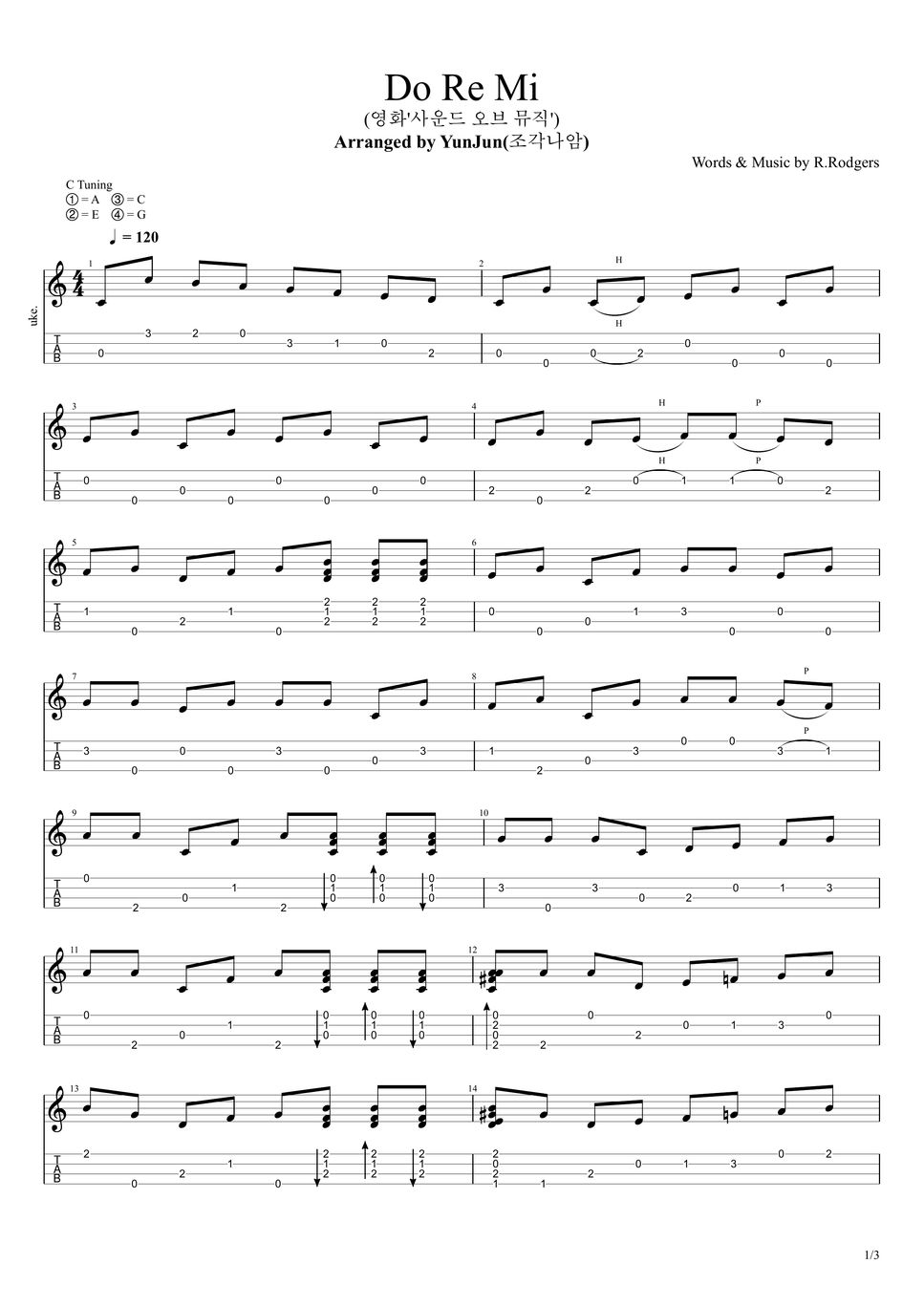 사운드 오브 뮤직(sound of music) 도레미송 Do Re Mi Song (우쿨렐레 연주곡) Sheet by