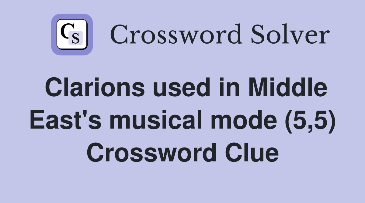 Clarions used in Middle East #39 s musical mode (5 5) Crossword Clue