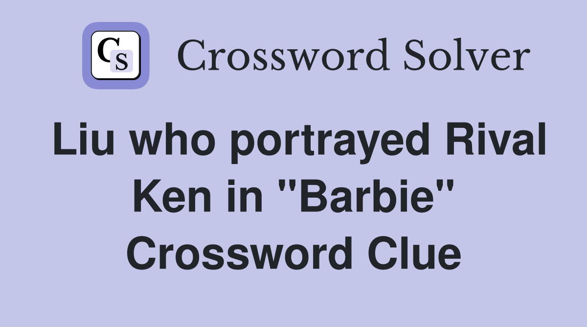 Liu who portrayed Rival Ken in quot Barbie quot Crossword Clue Answers