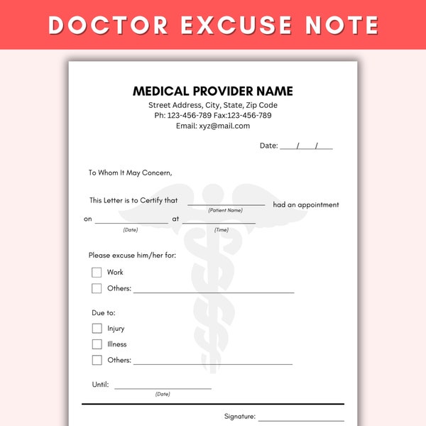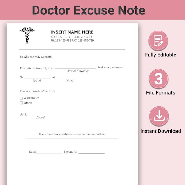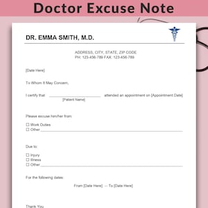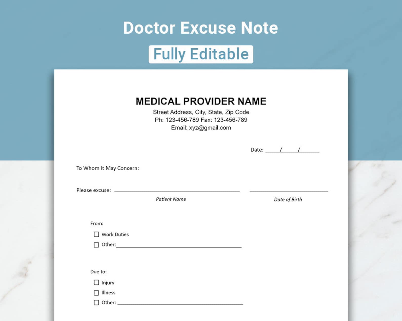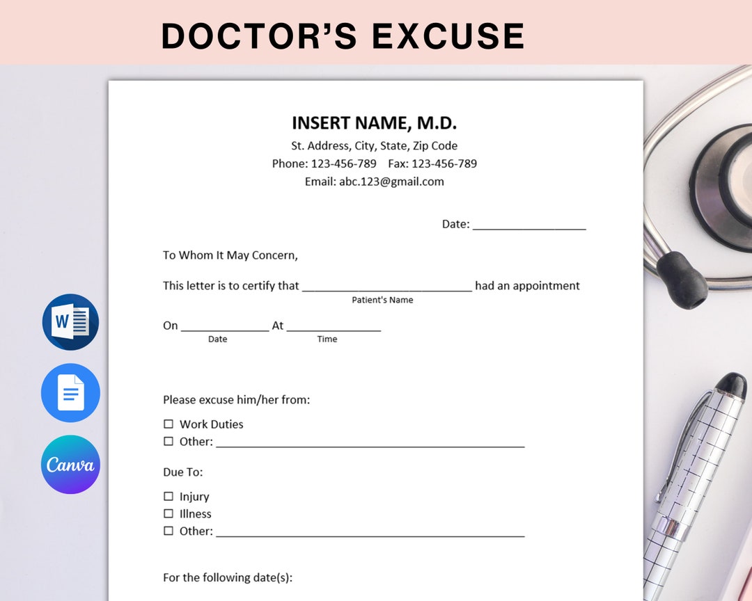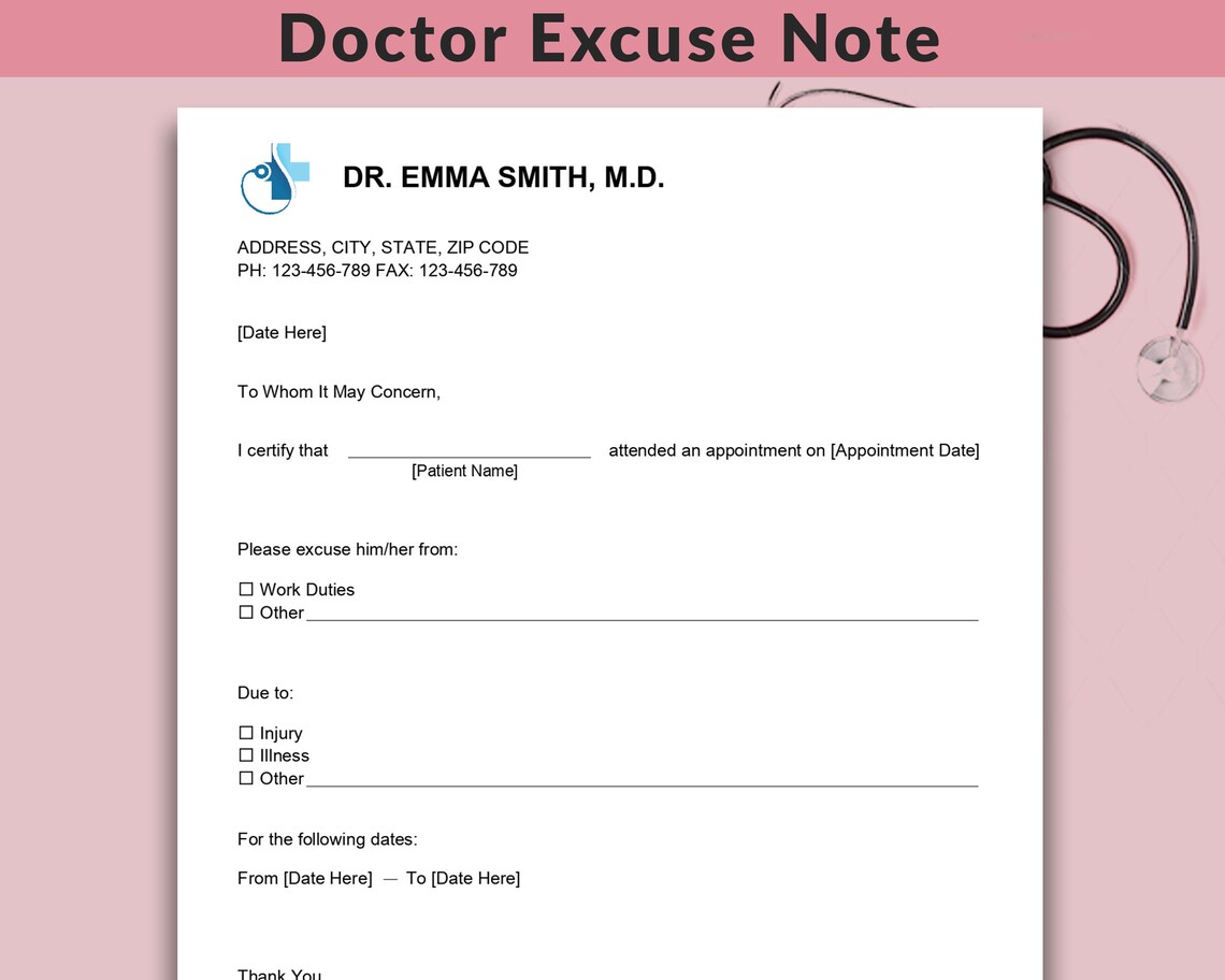 Doctor Excuse Template: Editable Note for Work (MS Word Canva) Etsy