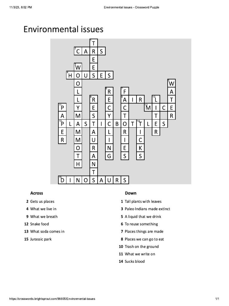 Environmental issues crossword PDF Waste Soil