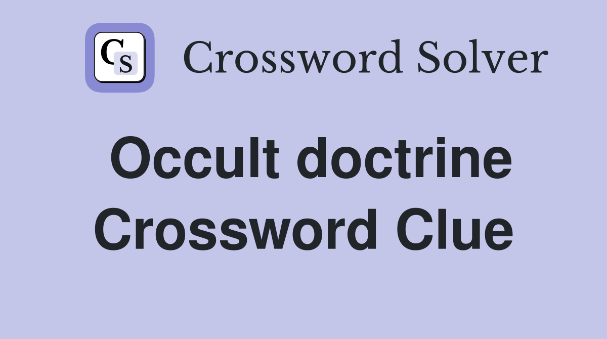 Occult doctrine Crossword Clue Answers Crossword Solver