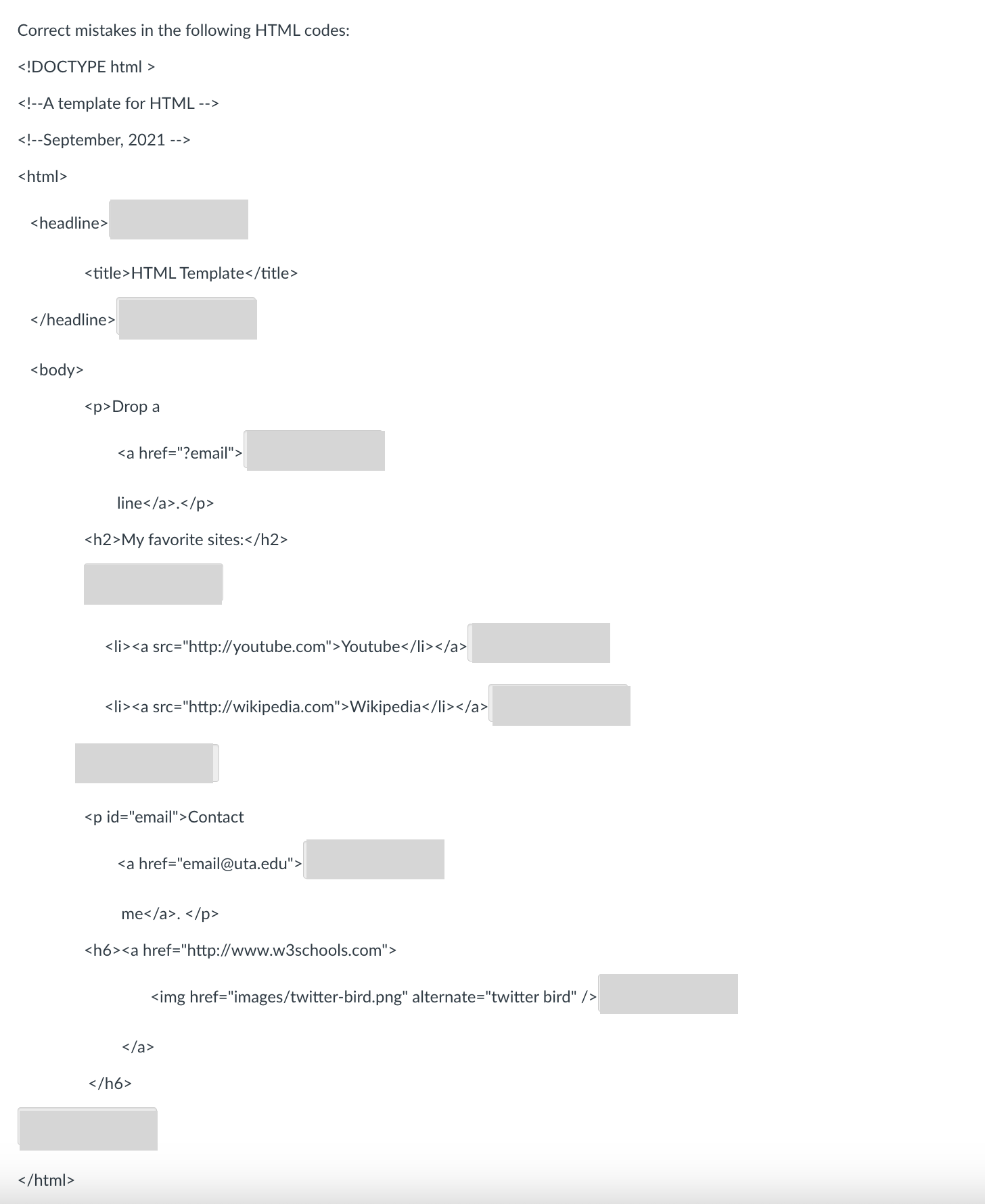 Solved orrect mistakes in the following HTML codes: DOCTYPE Chegg com