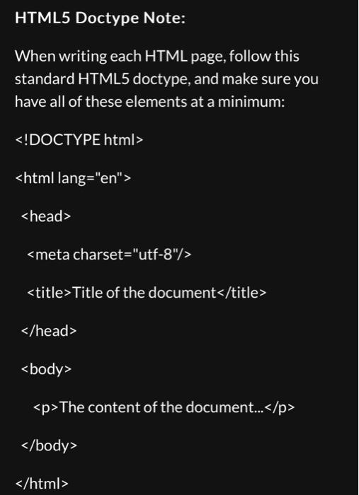 Solved HTML5 Doctype Note: When writing each HTML page Chegg com