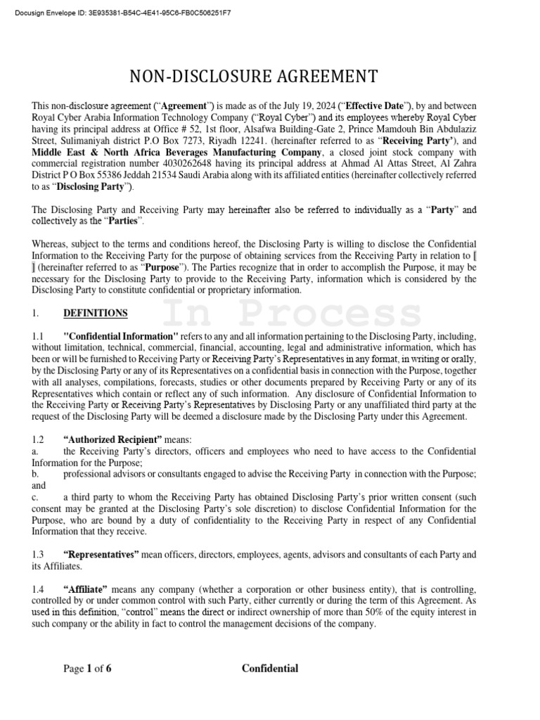 Non Disclosure Agreement