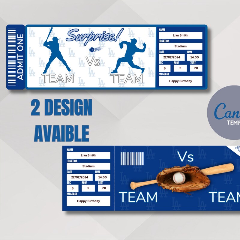 LA Dodgers Game Ticket Gift Voucher Printable Surprise Baseball Tickets