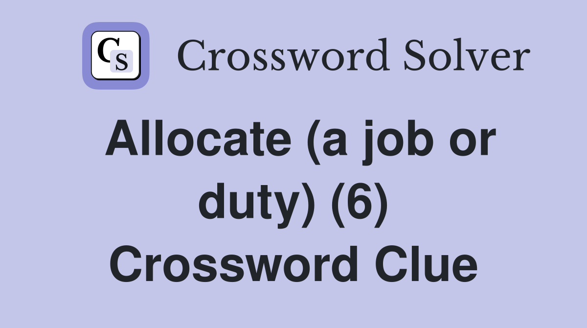 Allocate (a job or duty) (6) Crossword Clue Answers Crossword Solver