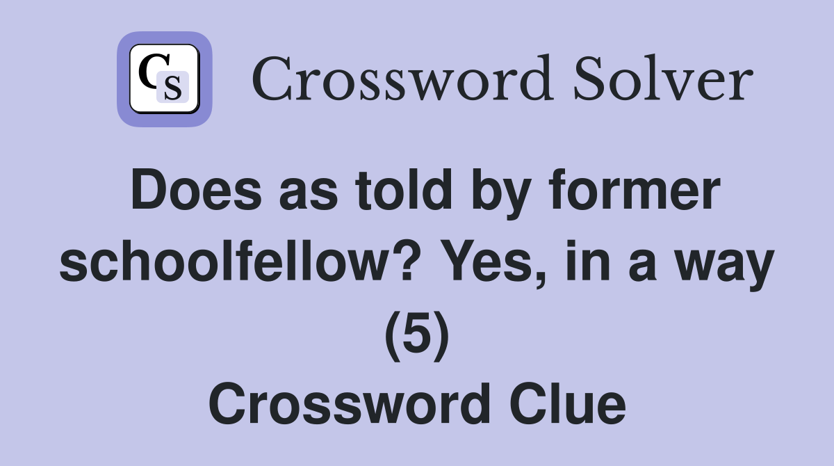 Does as told by former schoolfellow? Yes in a way (5) Crossword Clue