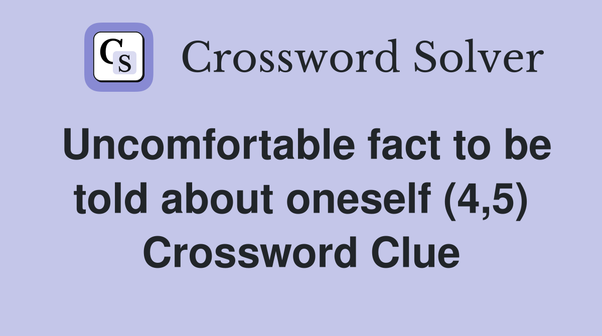 Uncomfortable fact to be told about oneself (4 5) Crossword Clue