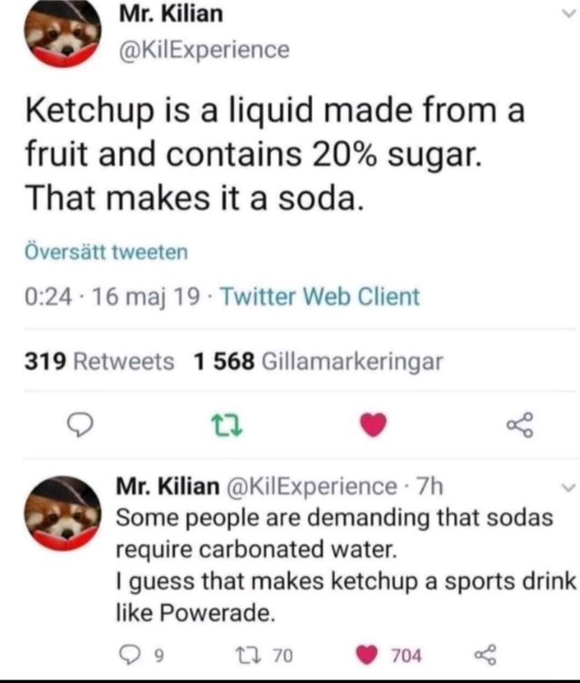 Mr Kilian KilExperience Ketchup is a liquid made from a fruit and