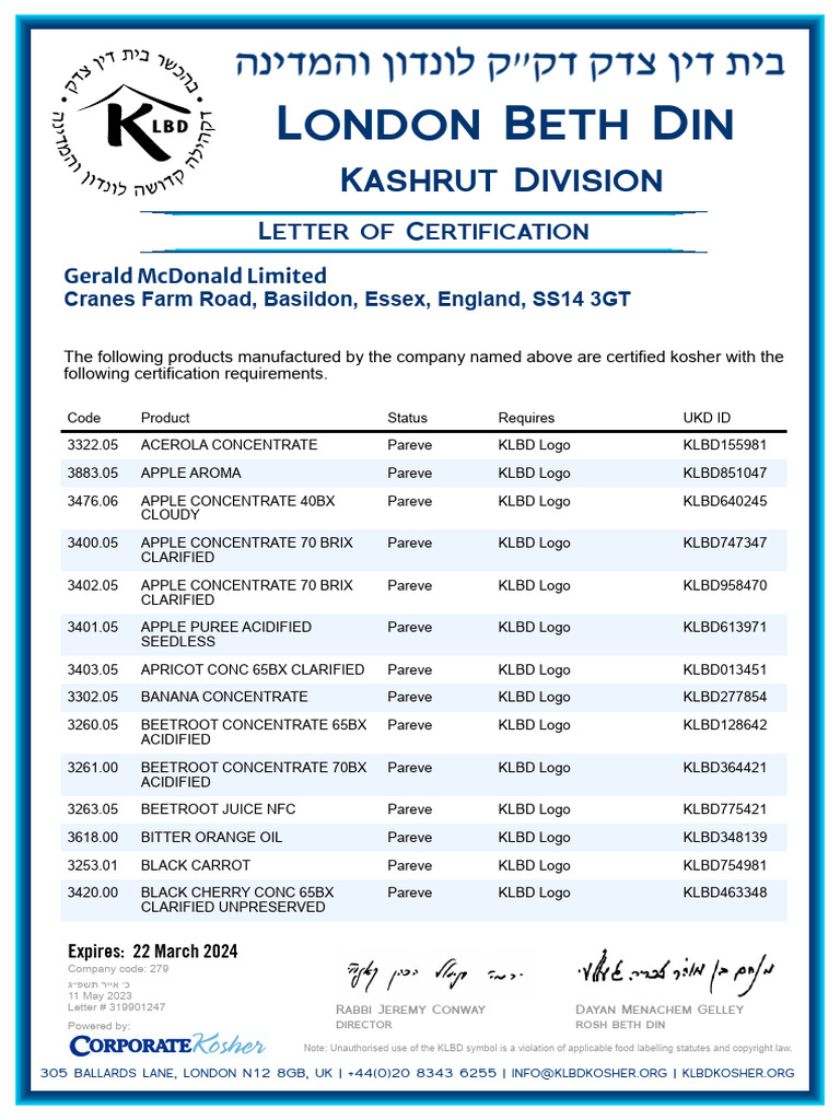 Kosher Certificates for Juices 2023 2024 PDF Foods Edible Fruits