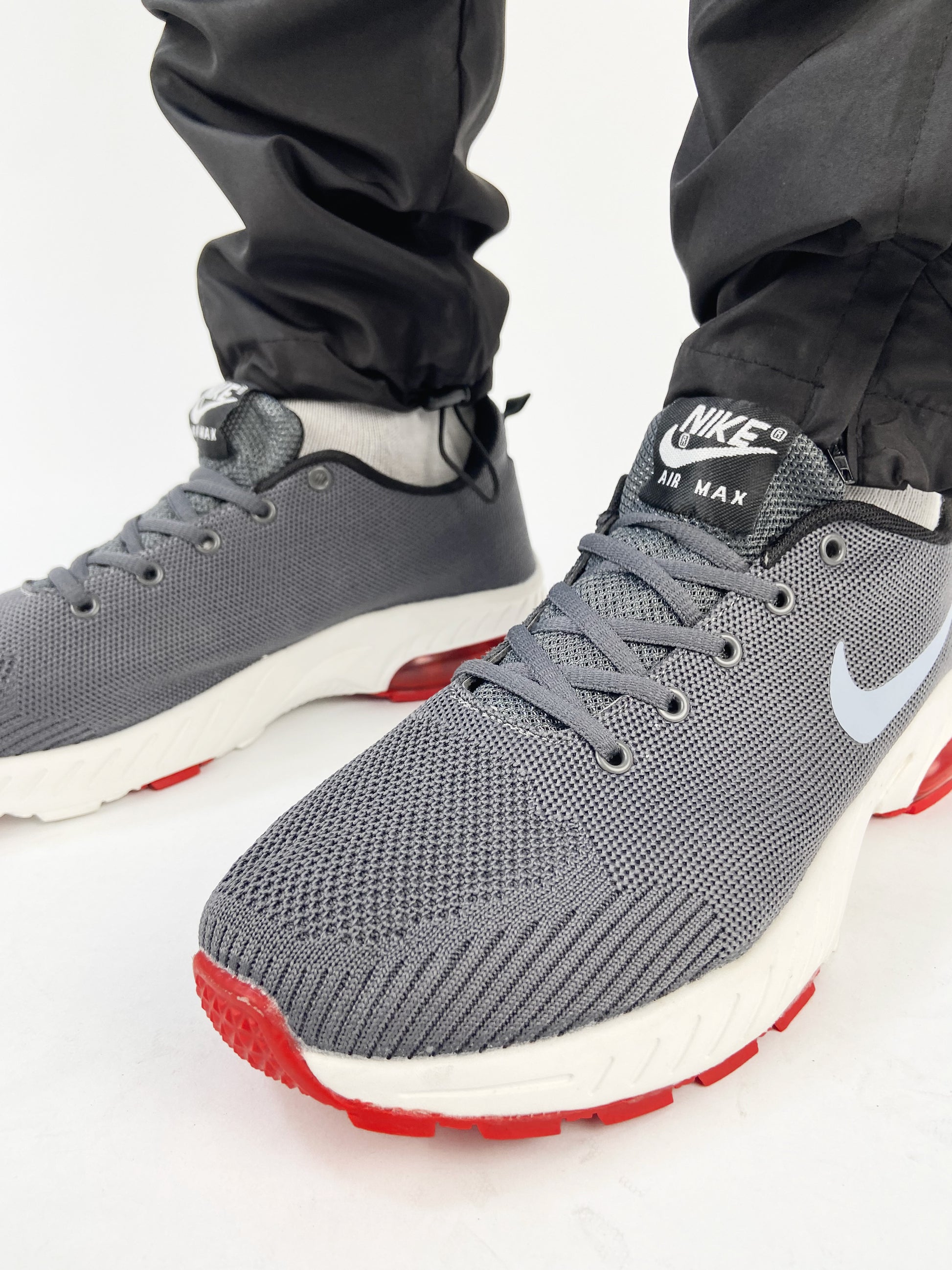 Nike air max grey trainers with white red sole Garmisland