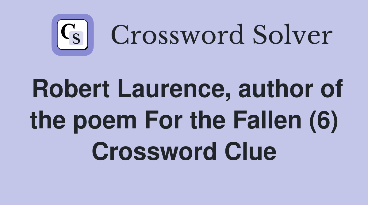 Robert Laurence author of the poem For the Fallen (6) Crossword Clue