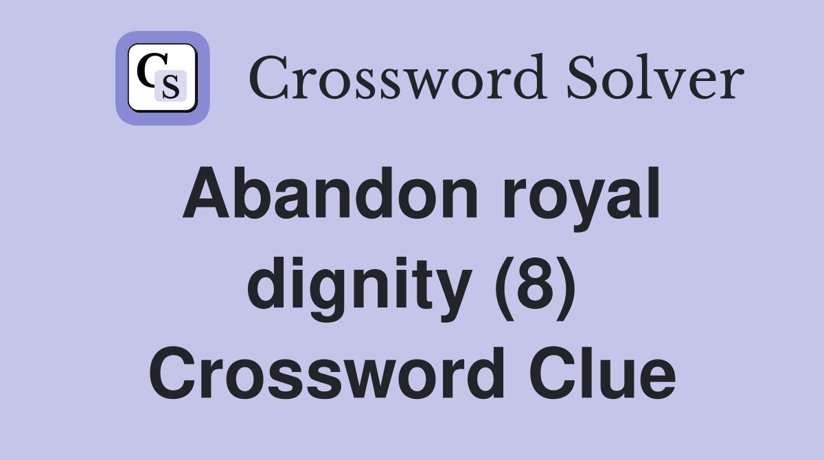 Abandon royal dignity (8) Crossword Clue Answers Crossword Solver