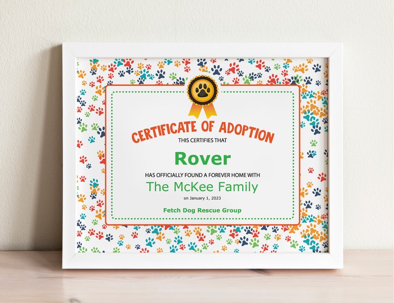 Dog Adoption Certificate Printable Pet Adoption Document Cat Etsy