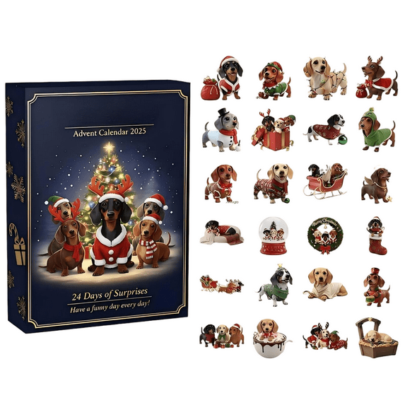 2025 Sausage Dog Christmas Advent Calendar 24 Days Cute Pet 2D Blind