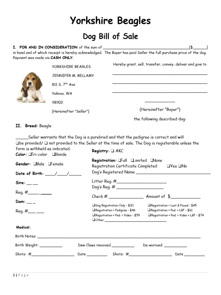 Dog Bill Of Sale Free Printable