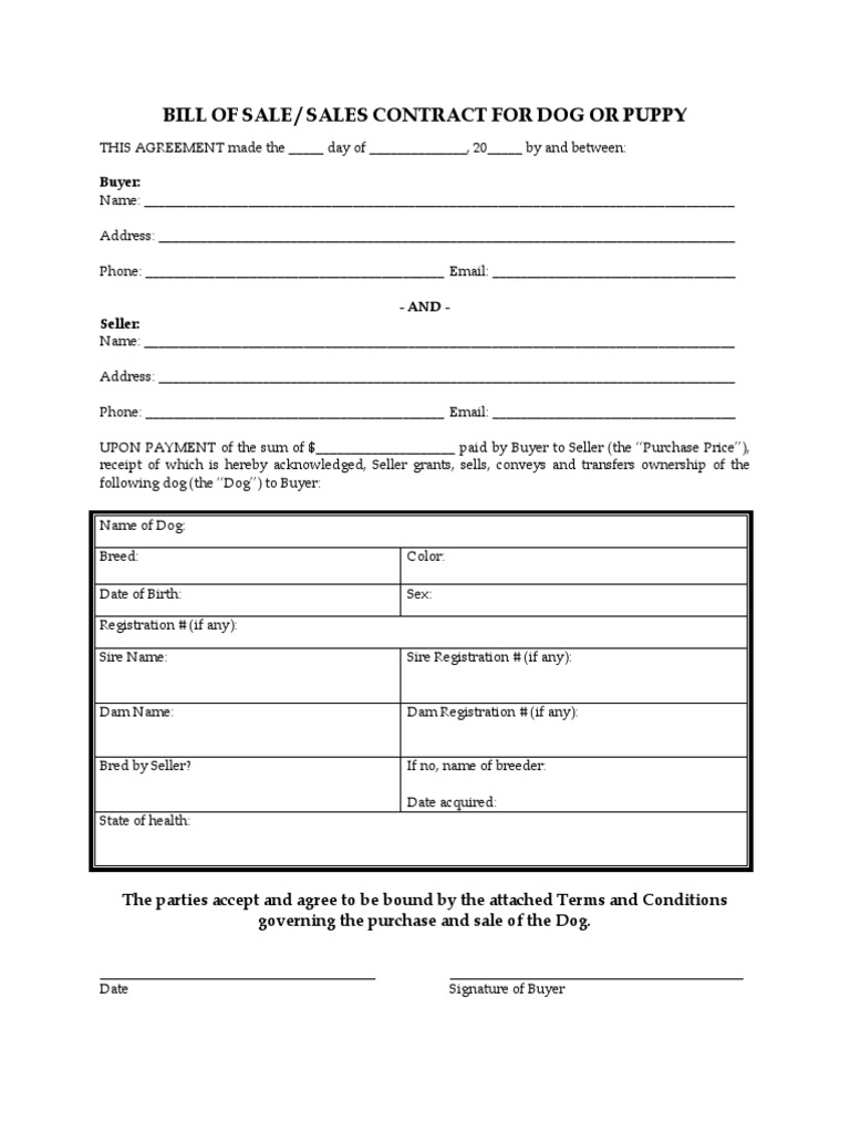 Blank Dog Bill of Sale Template ️ financialtemplates org