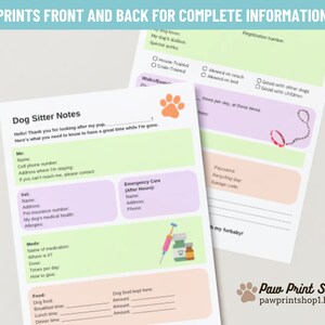 Dog Sitter Instructions Printable DIGITAL DOWNLOAD Print Fill Dog