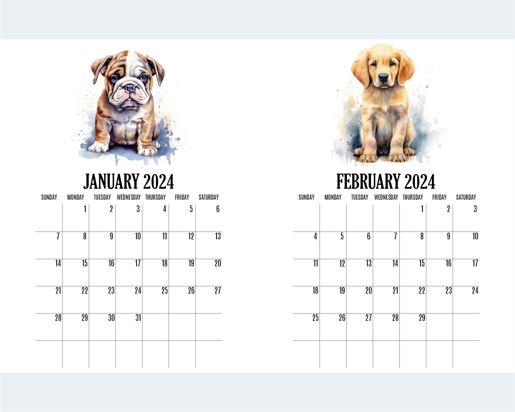 Dog Calendar 2024 Printable Calendar Puppy Calendar Monday and