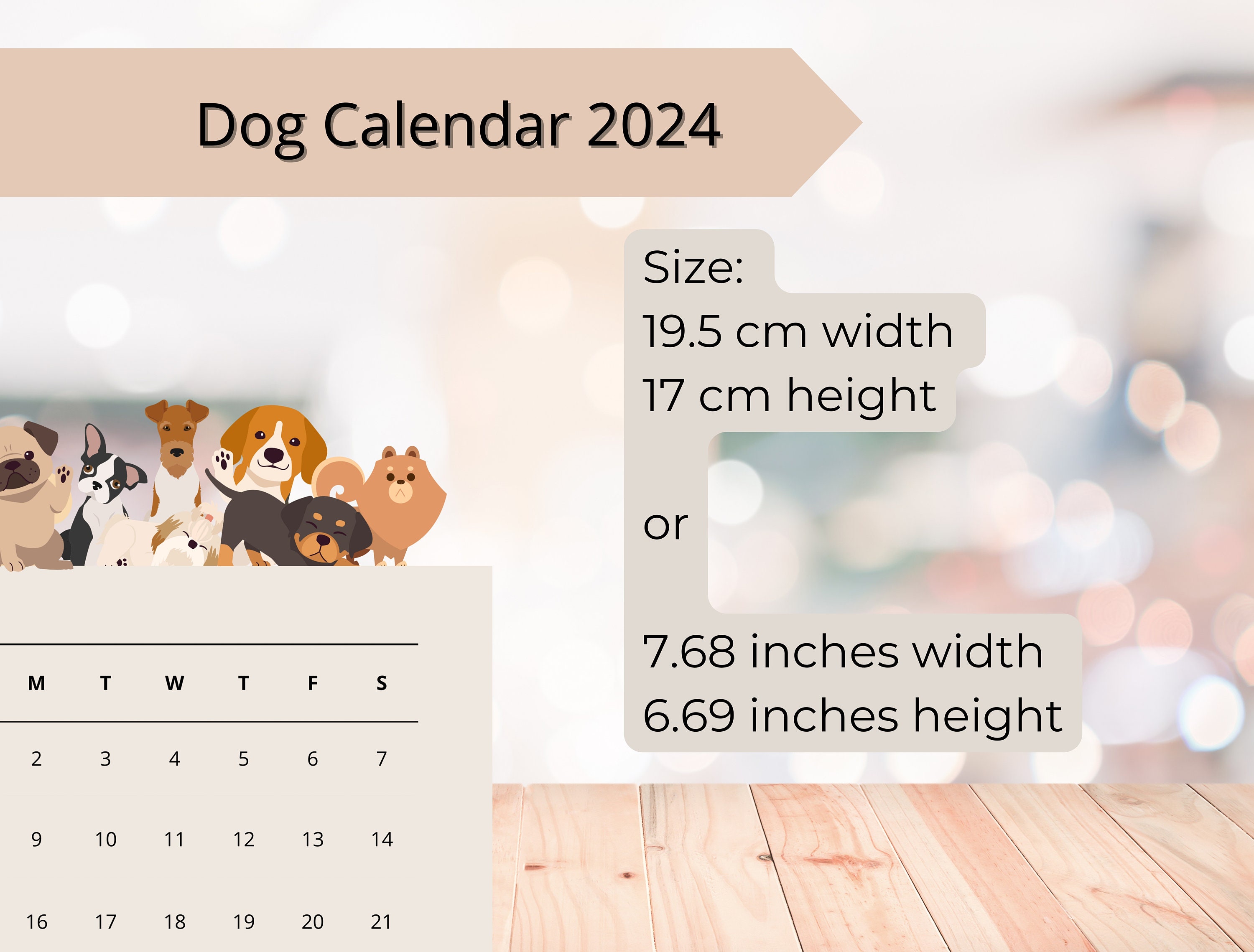2024 Dog Calendar Desktop Calendar Dog Lover Gift 12 Month Calendar