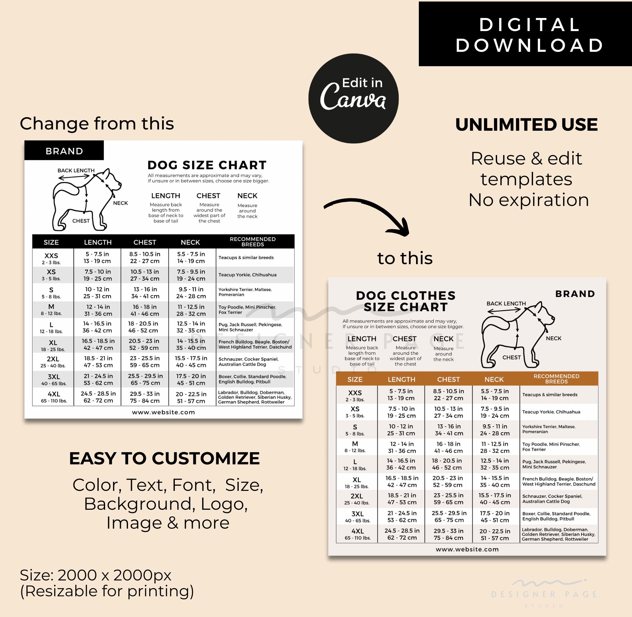 Editable Dog Clothes Size Chart Template Canva Printable Dog Clothing