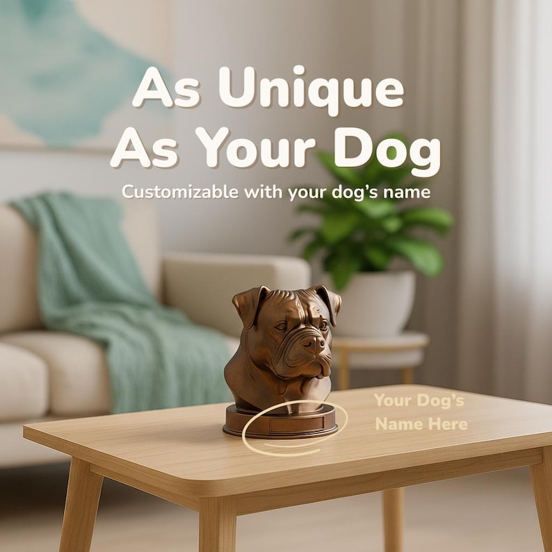 American Bully With Natural Ears Dog 3D Bust Statue With Personalized