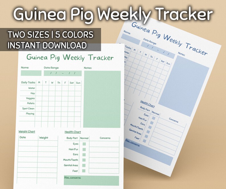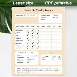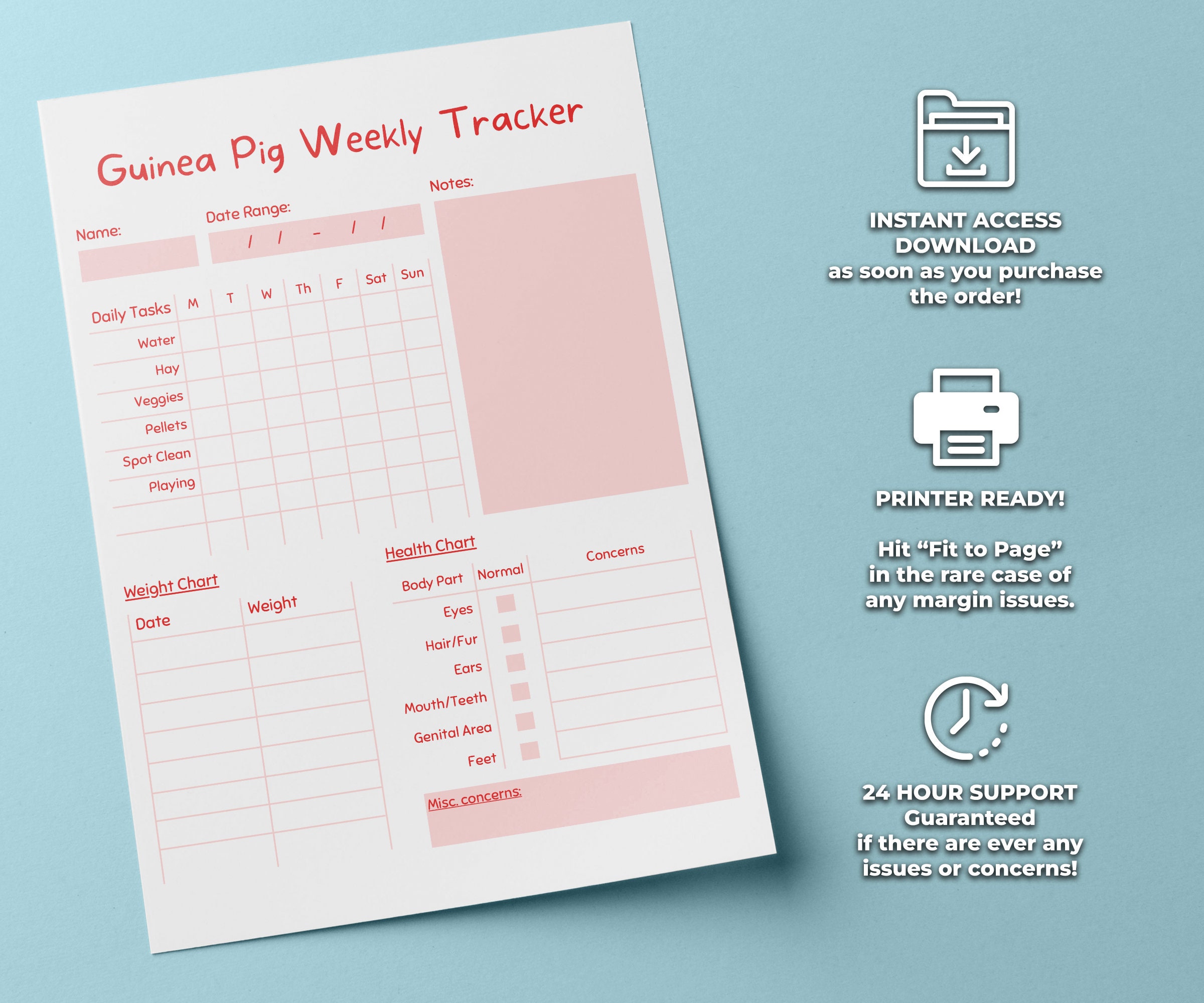 Printable Guinea Pig Weekly Tracker Letter Size Guinea Pig Care