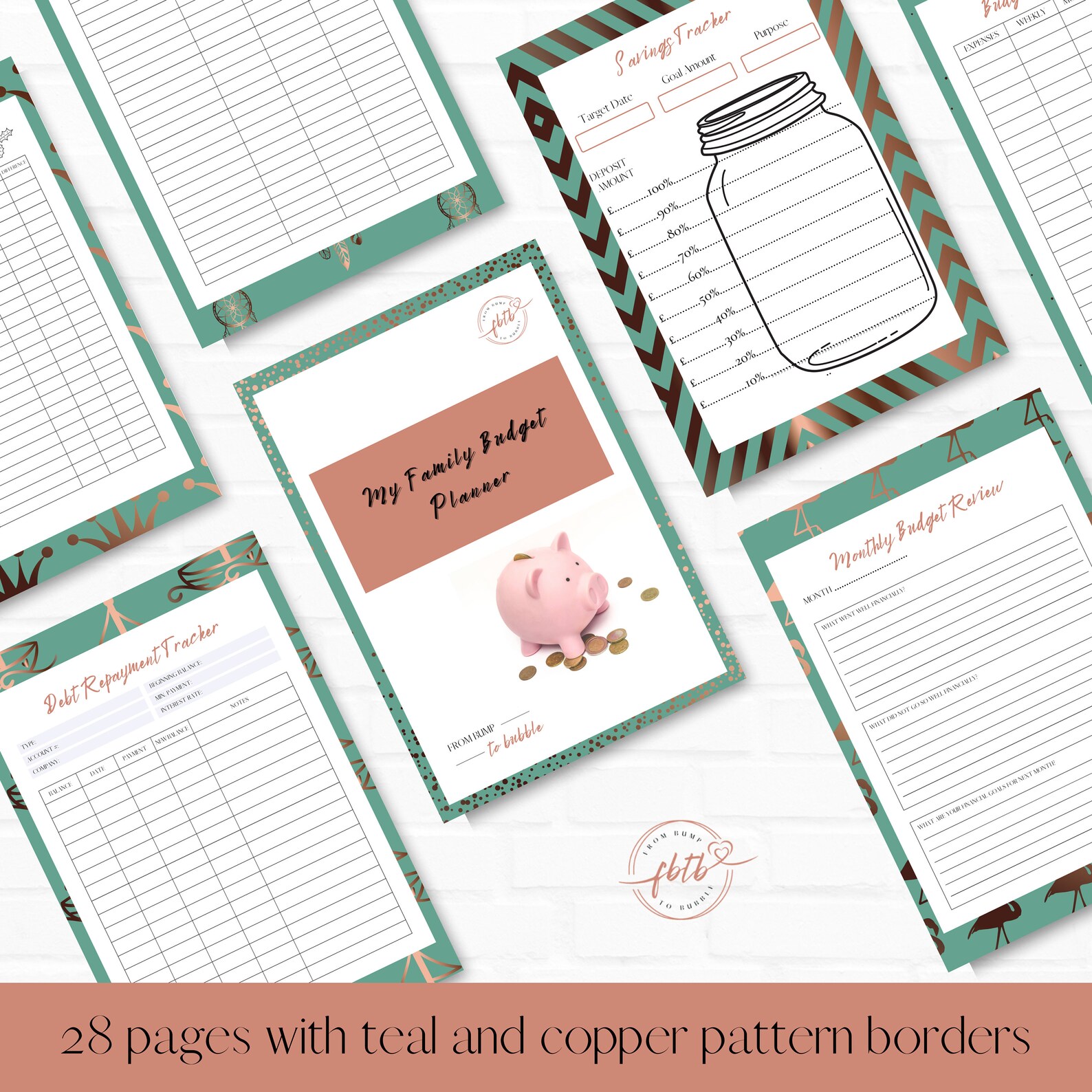 Family Budget Planner Printable Finance Tracker Emerald Green A4 and
