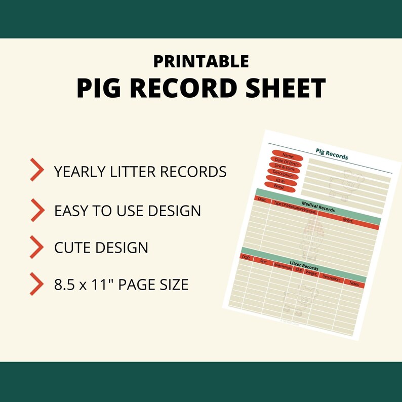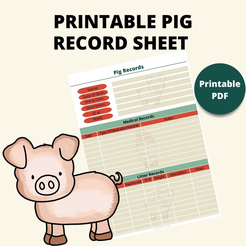 Printable Pig Record Sheet Instant Download 8 5x11 PDF Etsy