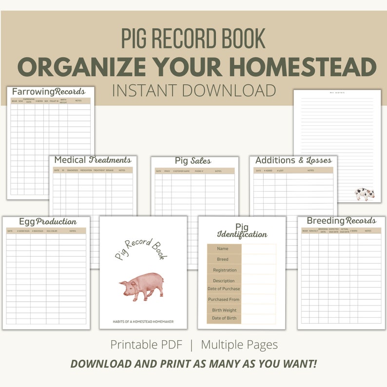 Pig Record Keeping Logbook Instant Download Manage Pig Etsy