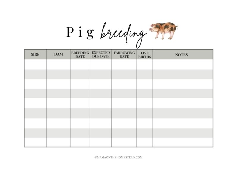 Printable Pig Record Sheet Instant Download 8 5x11 PDF Homestead Swine