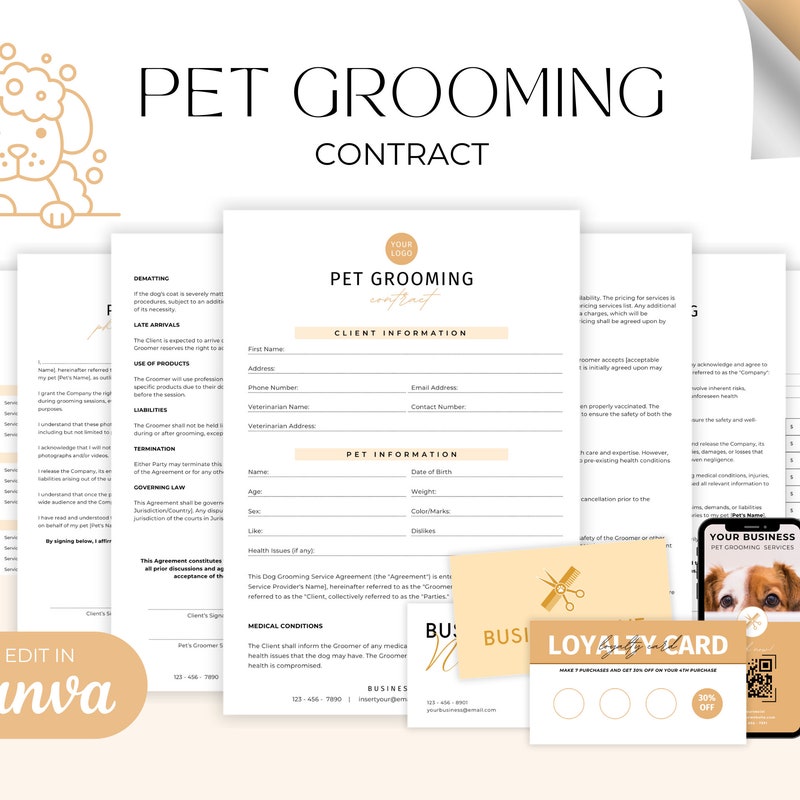 Pet Grooming Contract Template Etsy