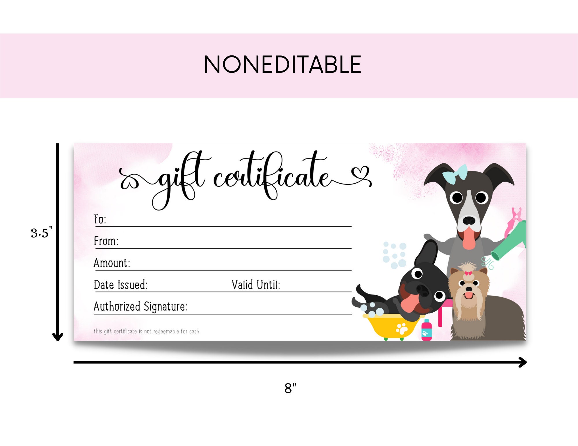 Dog Grooming Gift Certificate Printable Pet Coupon Instant Download