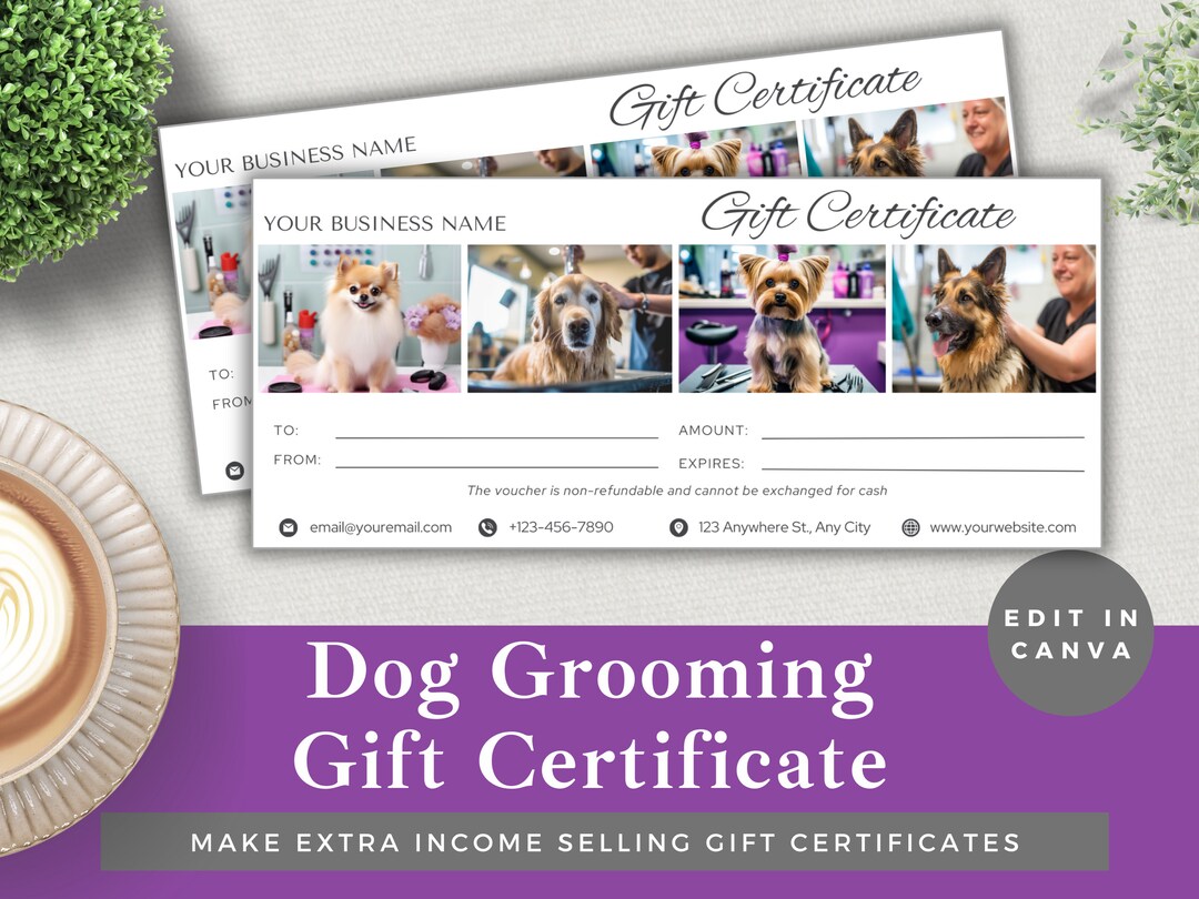 Editable Gift Certificate Dog Grooming Edit Template in Canva