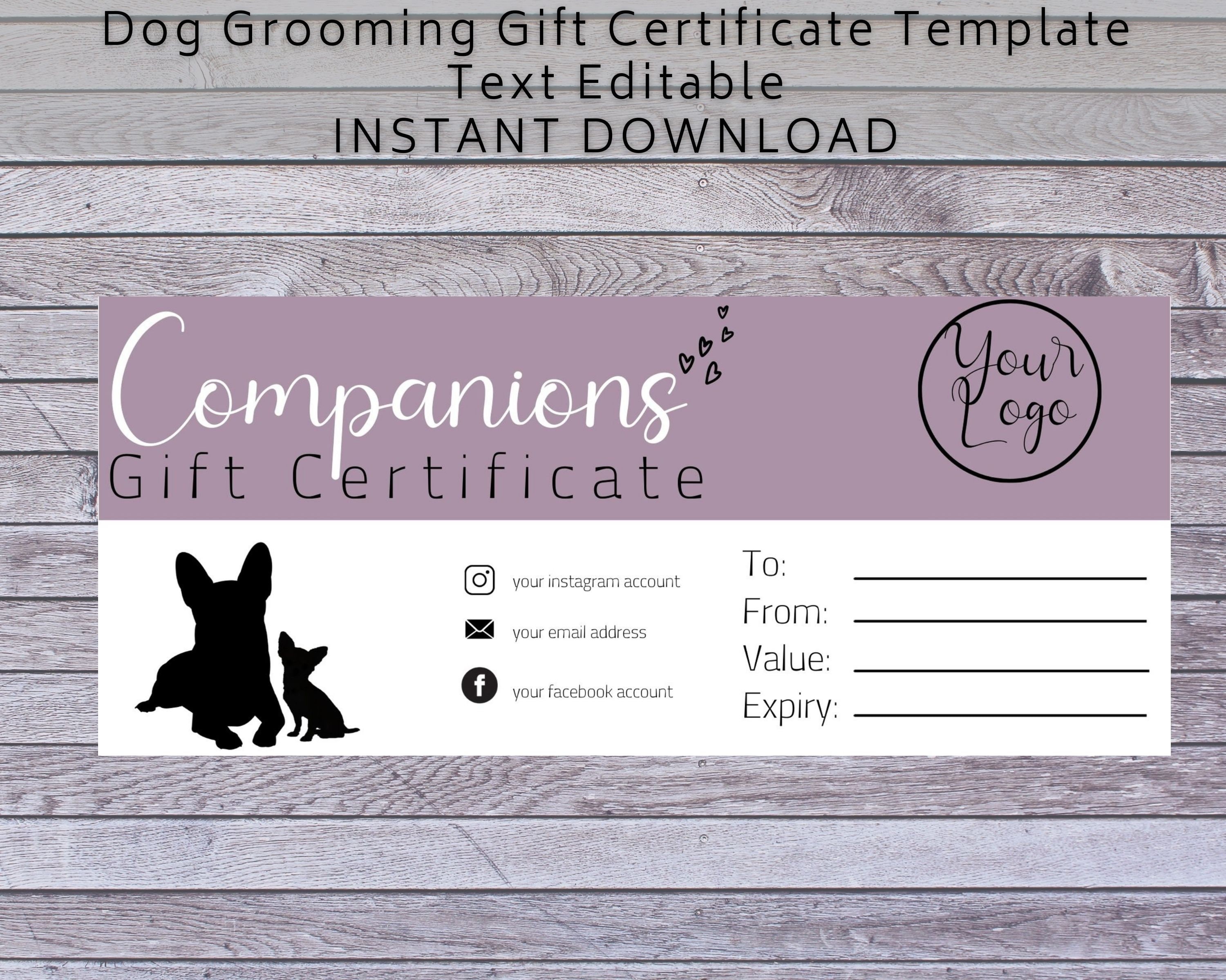Pet Grooming Gift Certificate Template Word Google Docs Adobe