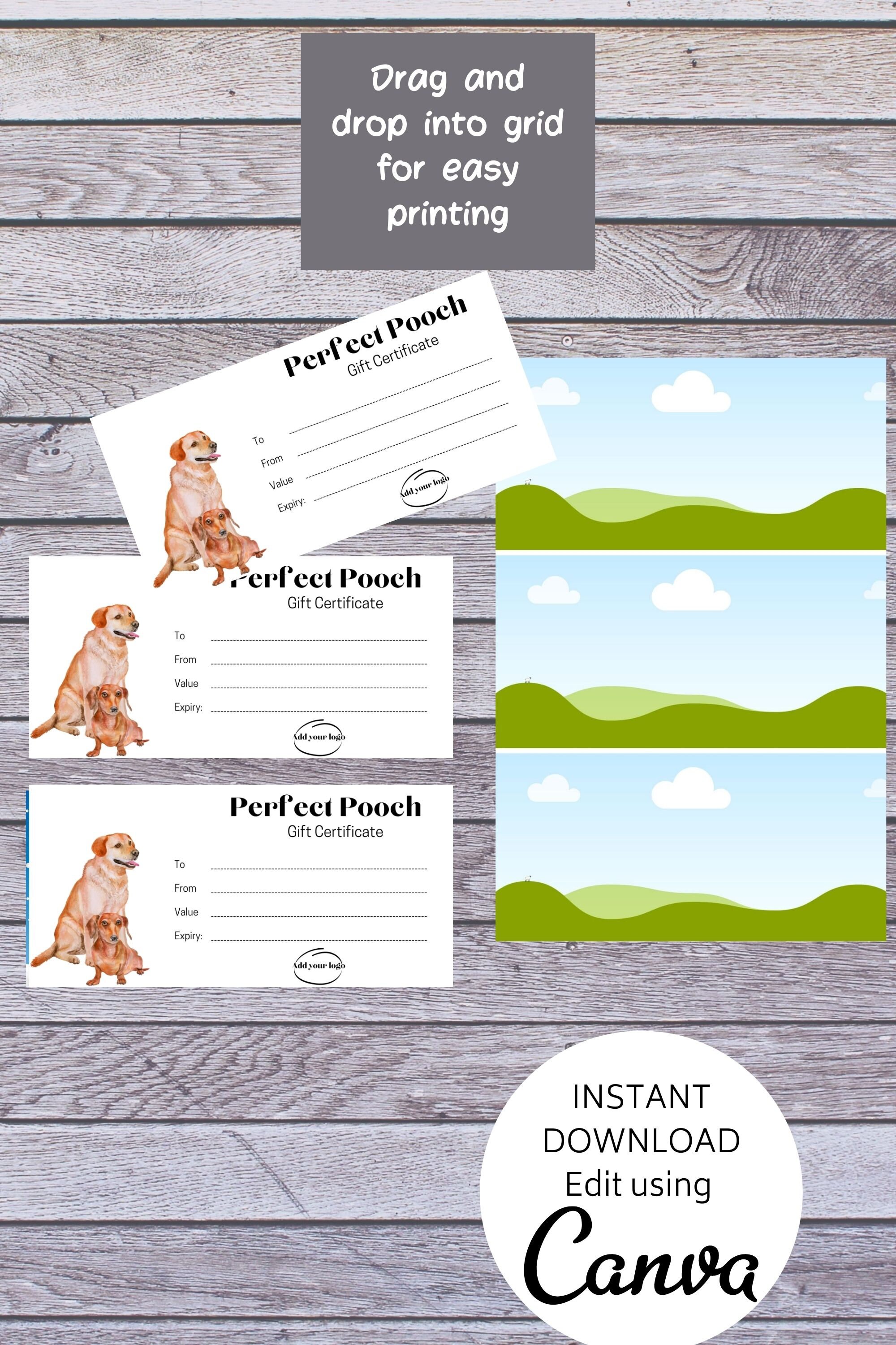 Gift Certificate Template Dog Grooming DIY Gift Voucher for Etsy UK